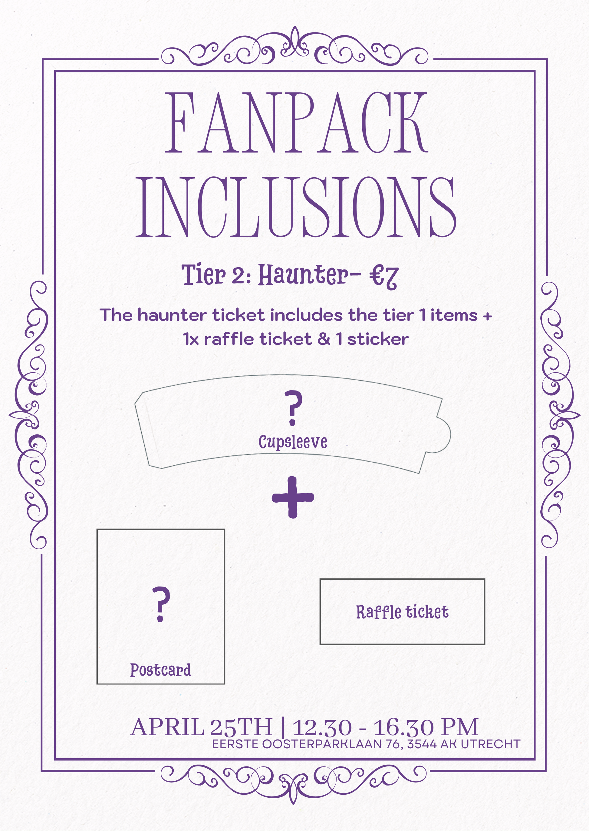 The haunter ticket includes the tier 1 items + 1x raffle ticket & 1 sticker