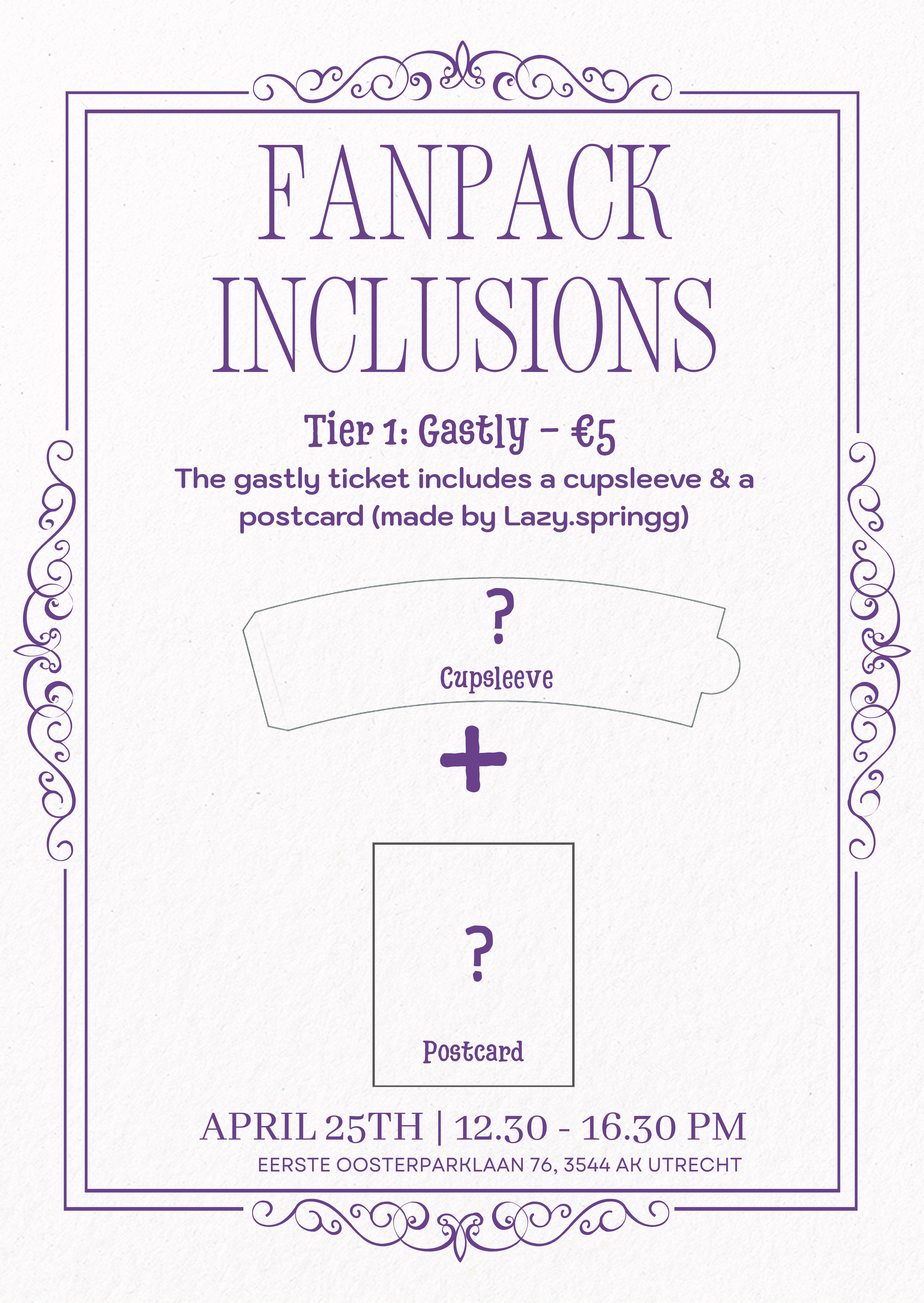 The gastly ticket includes a cupsleeve & a postcard (made by Lazy.springg)